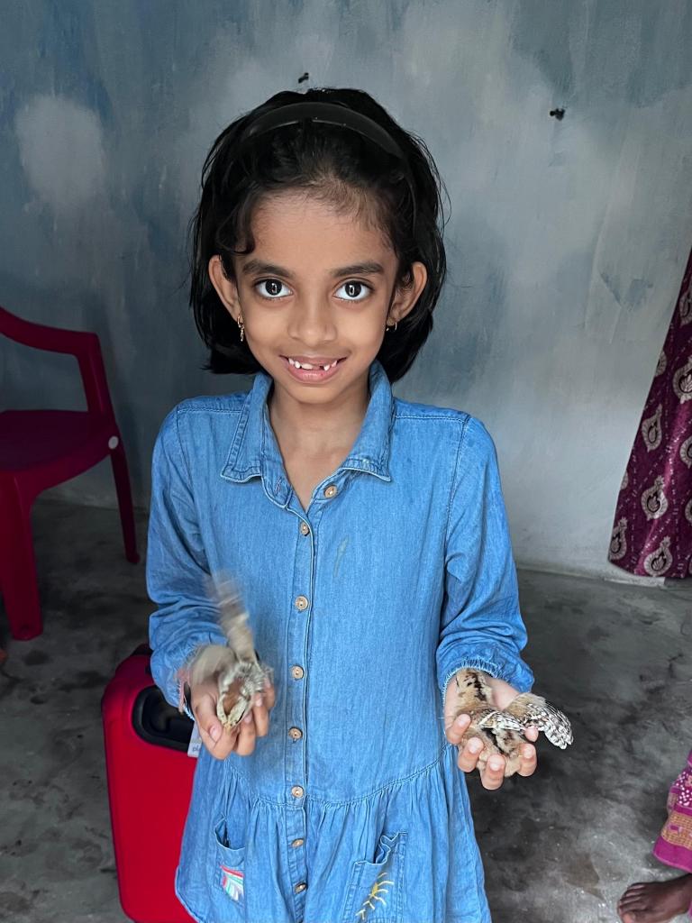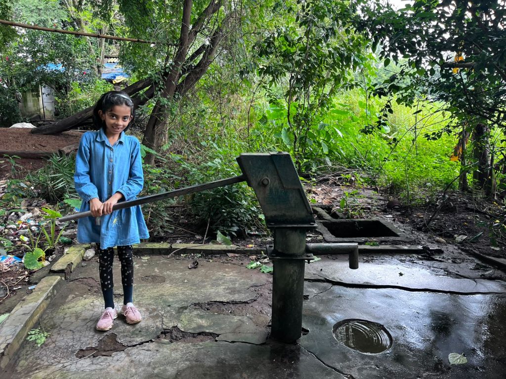 Later, my father showed me a hand pump in front of Siva uncle’s house. I had never seen one before because we live in a big city. He showed me how to pump water. It was a bit hard for me, but I still managed to get some water out. It was such great fun!